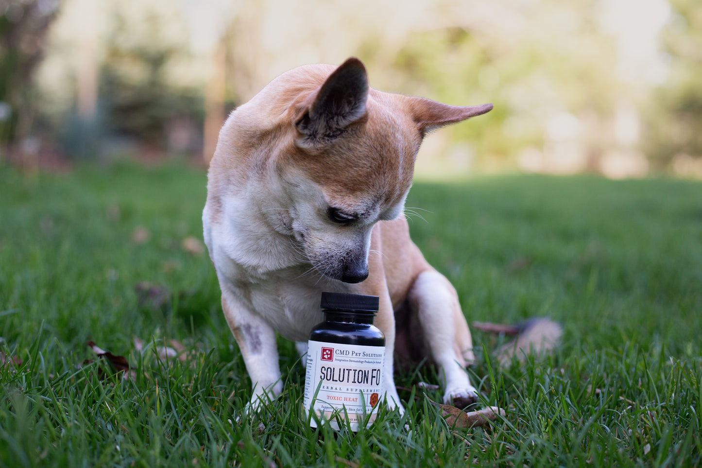 Folliculitis is a deeper issue than the superficial moist dermatitis of hot spots (choose SOLUTION HS for hot spots). There can be many types of lesions present, including redness, papules, bald spots, pustules, erosions, and crusts. They itch and might even be painful. According to Chinese Medicine, we understand this condition to have Toxic Heat. Our supplement SOLUTION FO: Toxic Heat is a cocktail of herbs that Clear Heat, Drain Damp, Resolve Toxins and Stop Itch. It works on a deeper level than SOLUTION HS: Damp Heat. **